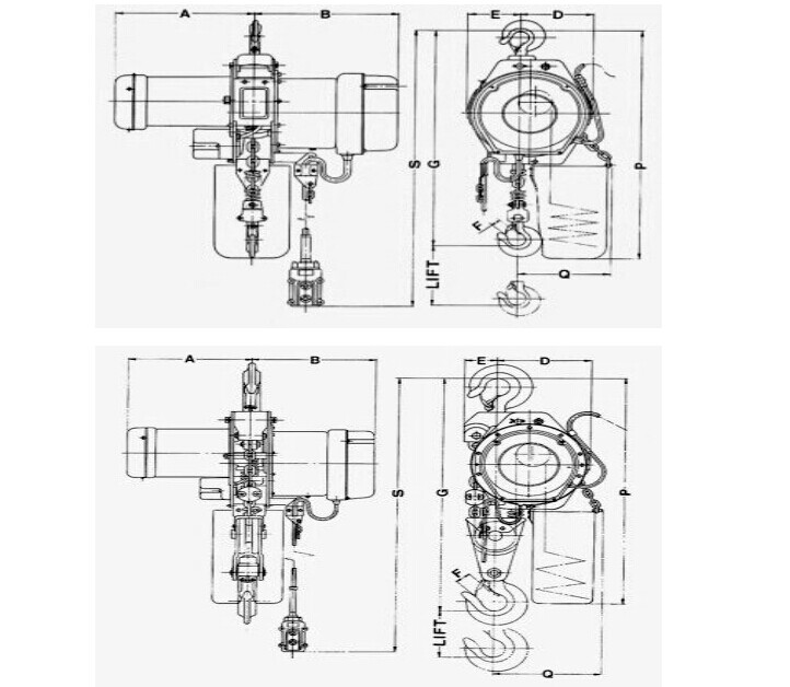 5、 开关:吊上吊下都有开关装置,使电机自动停止,防止链条超出,确保安全。