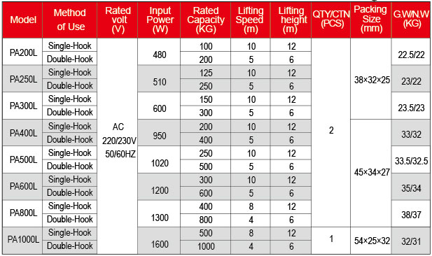 三. 如钢丝绳反向提升,提升机马达会自动停止工作。