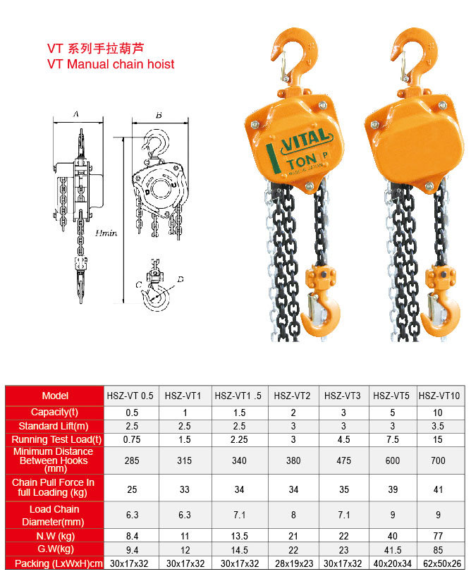 VT型手拉葫芦8大特点使其具备了高性能、高安全性又充满了灵性,让您更轻松、方便的完成工作,大大减轻您的劳动强度。