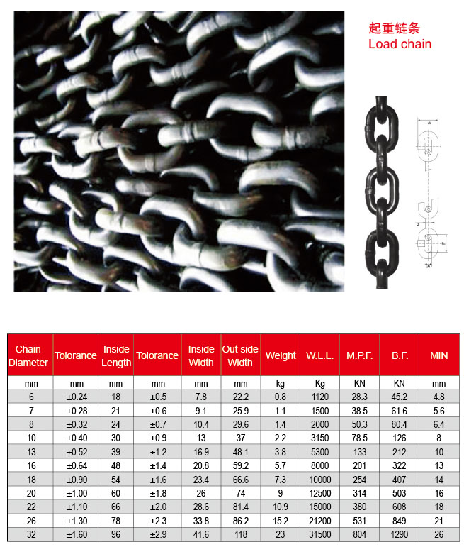 (2)起重链条规格