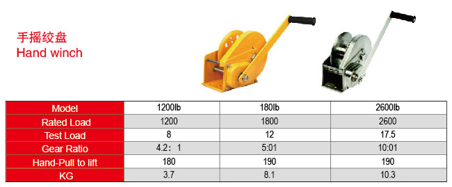 普通手动绞盘大小可从600lbs-2500lbs